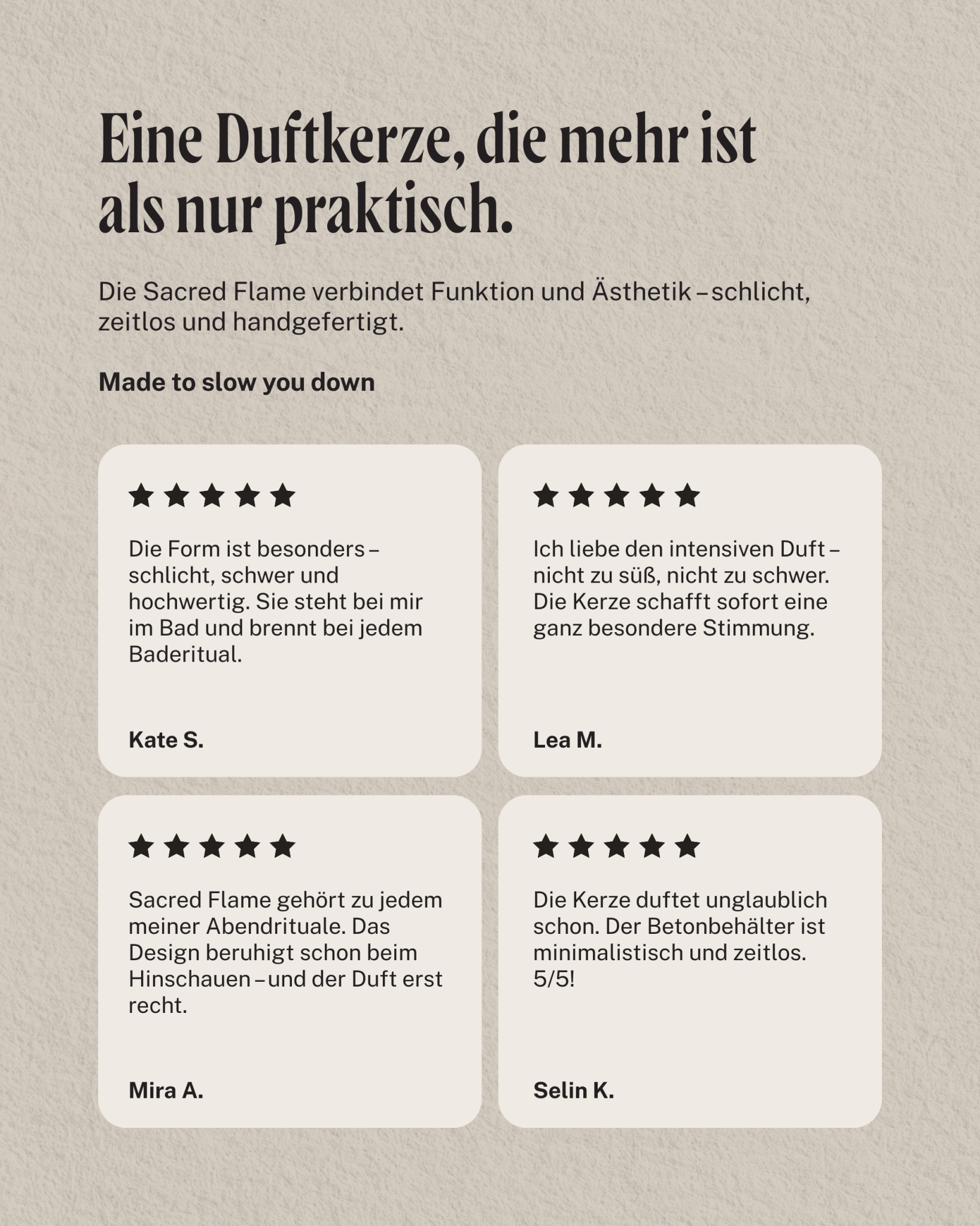 Gentle light, natural aromas, and pure essential oils – Sacred Flame creates a calm atmosphere for rituals, evening hours, or mindful breaks. Thanks to the lid, the flame can be safely extinguished.